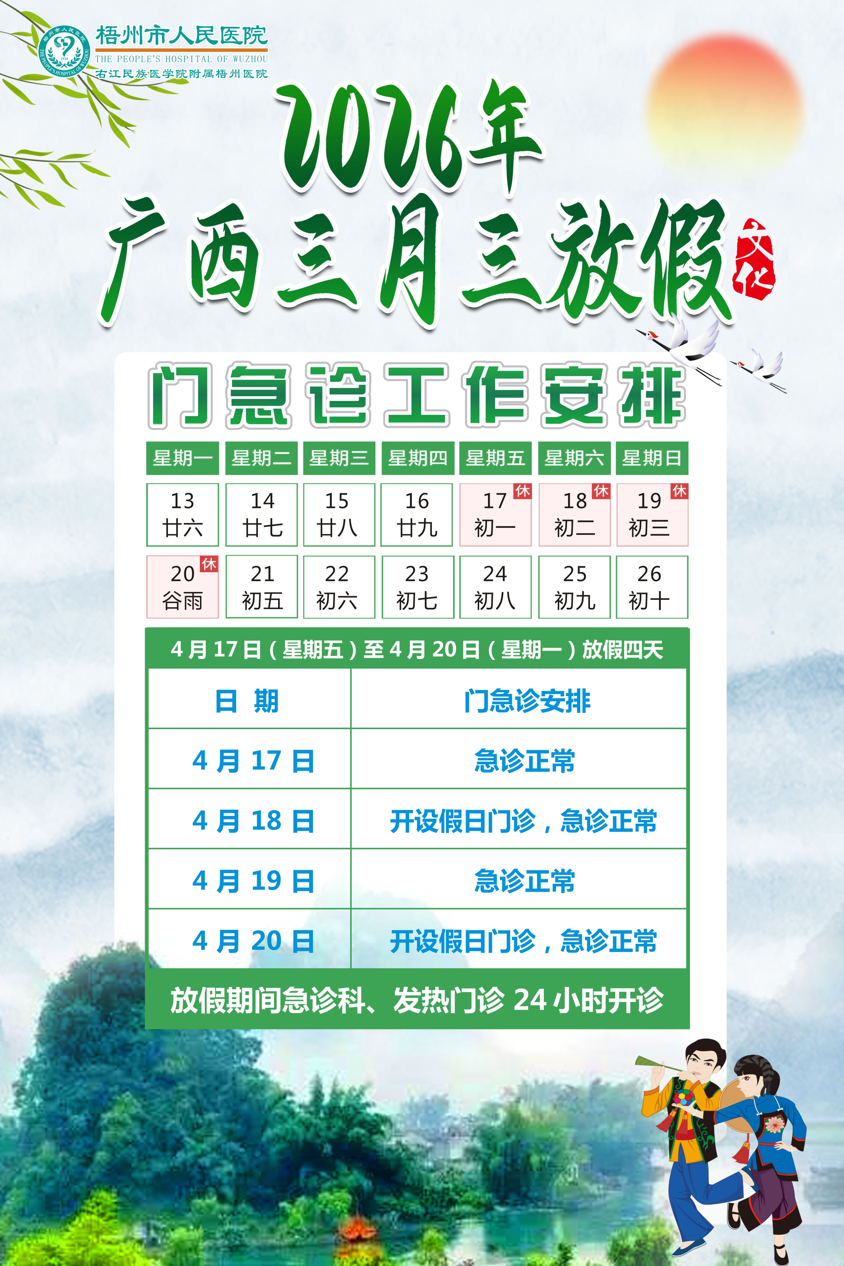 3.节假日门诊上午8:00-12:00,下午14:30-17:30开诊,具体以公告为准。